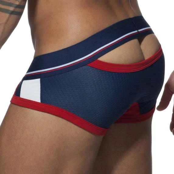 This model features a vibrant deep blue mesh body that provides both transparency and maximum ventilation. The wide elastic waistband is emblazoned with the iconic Addicted logo, ensuring a secure fit while making a statement. The unique ‘Empty Bottom’ construction features a strategic opening at the upper rear, offering a bold aesthetic and unparalleled freedom of movement.