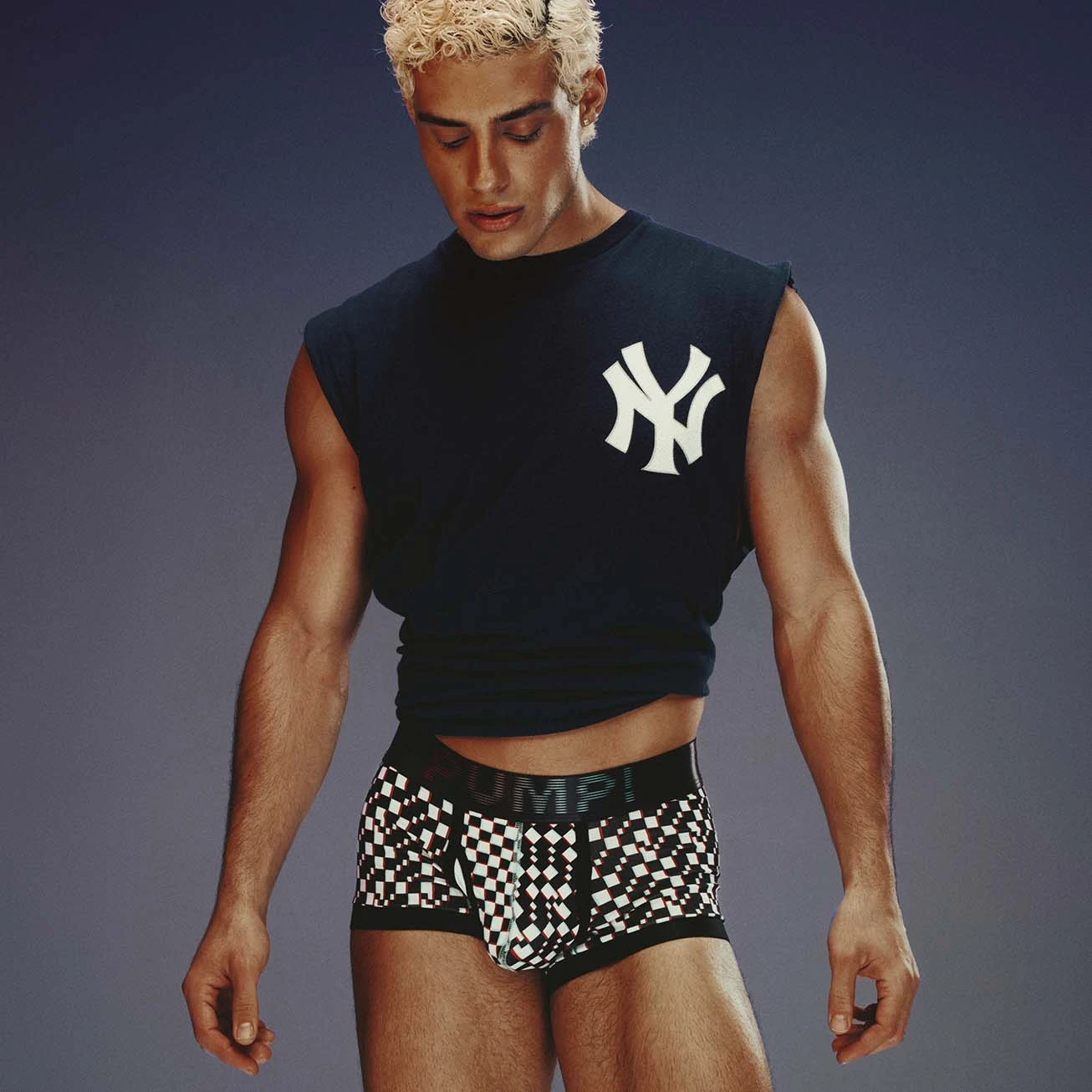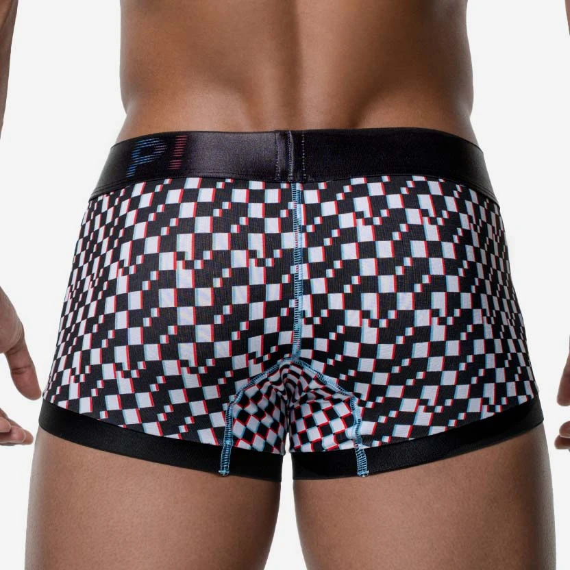 Boxer Pump! Glitch 11117. Boxer taille basse très doux et confortable. Ceinture élastique large logotée PUMP!. Maintien optimal pour être porté tout au long de la journée. Imprimé à carreaux noir et blanc déformé, assorti pour un look dynamique. 92% Coton, 8% Elasthanne.