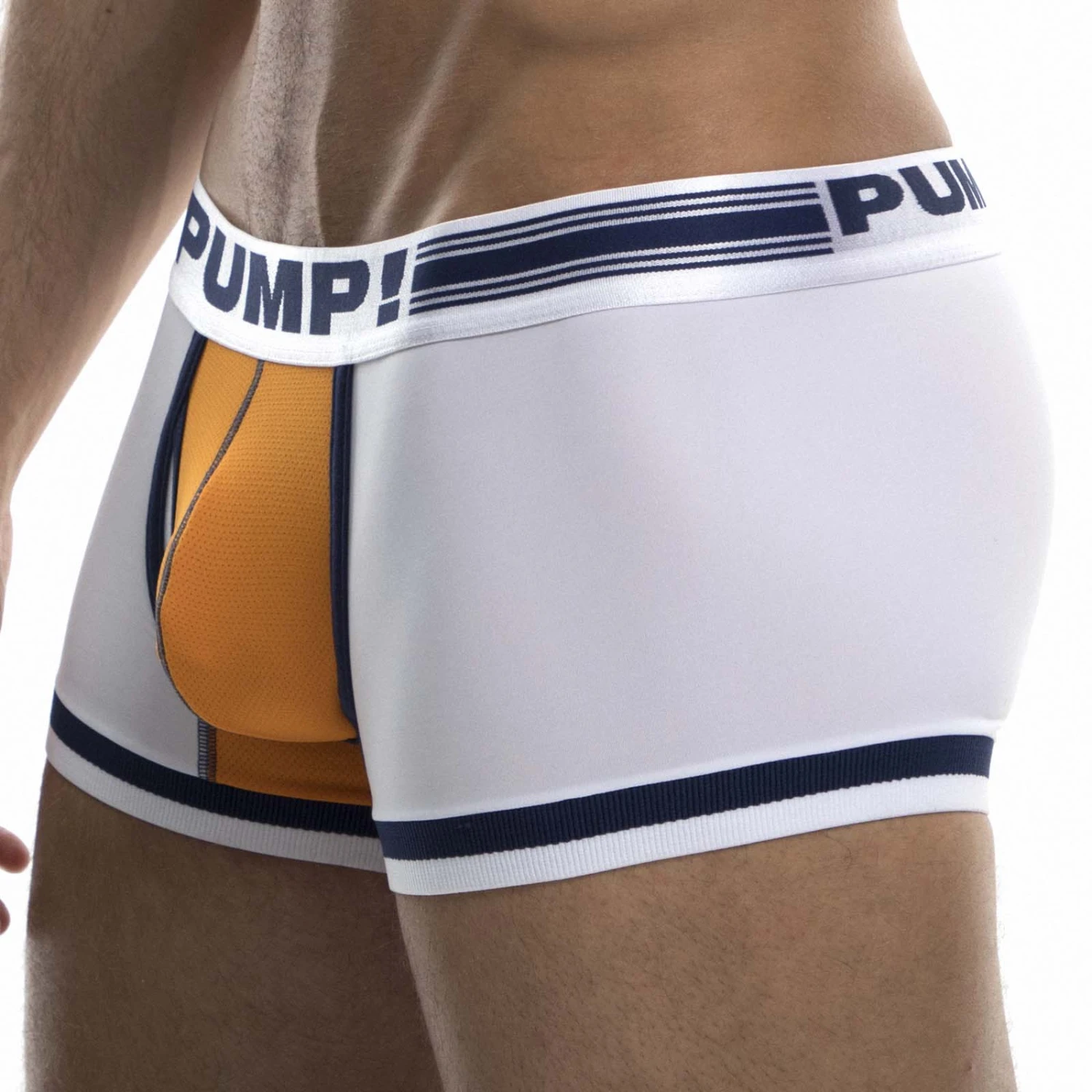 Boxer Pump! Touchdown Varsity 11076. Boxer d’une douceur intense et confortable en tissu Mesh ajouré sur la poche frontale. Ceinture élastique large logotée PUMP!. Un mélange de couleur qui s’accordent parfaitement. Maintien optimal pour être porté tout au long de la journée. Ouverture poche kangourou factice. 78% Nylon, 22% Elasthanne.