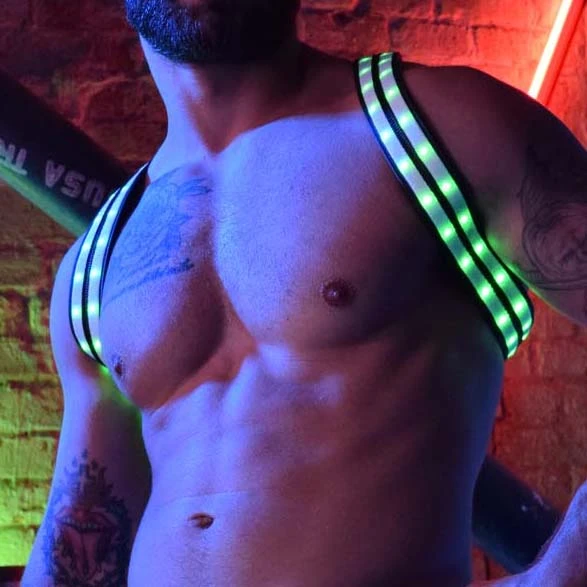 This harness features integrated LED strips that contour the shoulder, offering a sleek and futuristic look. With nine selectable colors and three dynamic animation modes—including a vibrant rainbow cycle, smooth color shifting, and high-energy scrolling—you can synchronize your look to the rhythm of the night.