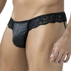 Ce jock-string se pare d’une dentelle noire de haute qualité, offrant un contraste élégant avec la peau. Sa coupe ergonomique et sa pochette frontale structurée assurent un maintien parfait tout en sublimant la silhouette masculine.