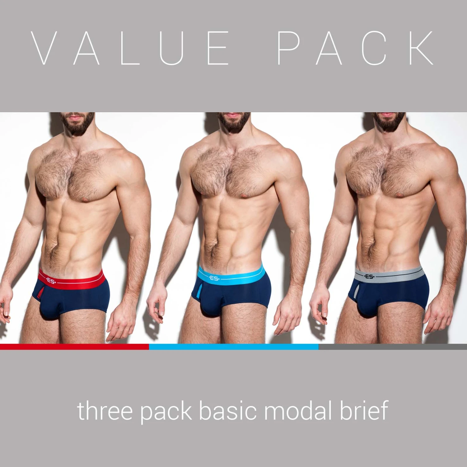 Visually striking and structurally sound, each pair features a signature wide elastic waistband with the iconic ES Collection logo centered for a bold, masculine look. The front pouch is thoughtfully lined to provide exceptional support and a smooth, contoured silhouette, while the premium fabric blend ensures a lightweight, breathable feel against the skin.