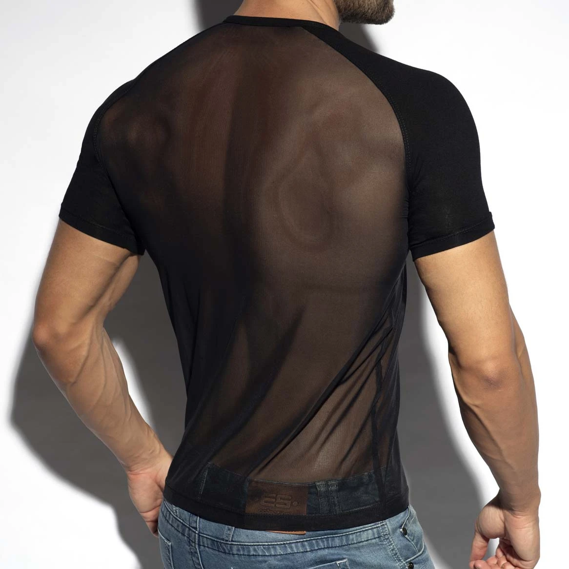 Elevate your urban style with the ES Collection Ranglan Net TS310, a piece that defines modern sensuality and sportswear excellence. This T-shirt features a bold visual contrast: the shoulders and sleeves are crafted from a solid, opaque black fabric, while the main body is constructed from a provocative transparent mesh that highlights your physique. The ultra-slim fit and round neck design create a sharp, contemporary silhouette for the confident man.