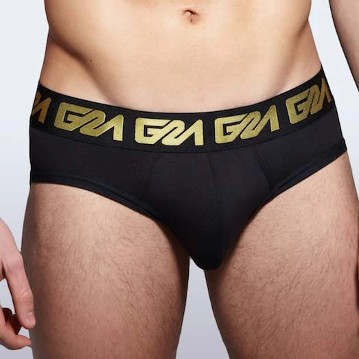 - Design Visuel : Ce modèle se distingue par sa finition soyeuse et sa large ceinture élastique dorée. Le logo GM (Garçon) est brodé en Gold pour un contraste saisissant sur le coloris sombre de la pièce.