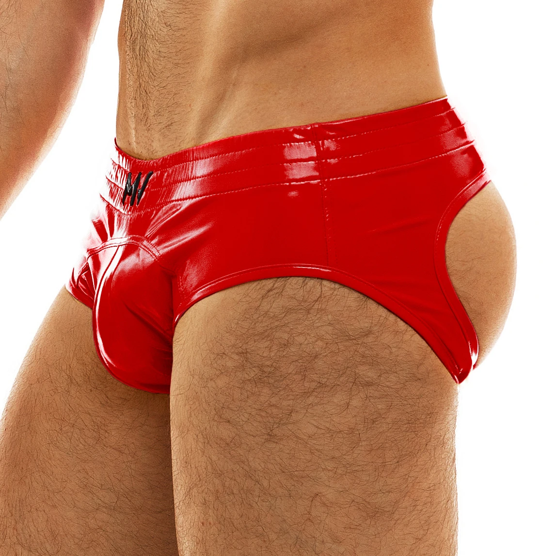 Featuring a striking high-shine « wet-look » finish, this Rouge (Red) slip is crafted from premium polyurethane that captures both light and attention. The Empty Bottom design provides a daring open-back silhouette, while the wide elastic waistband proudly displays the Modus Vivendi signature logo, ensuring a secure and stylish fit.
