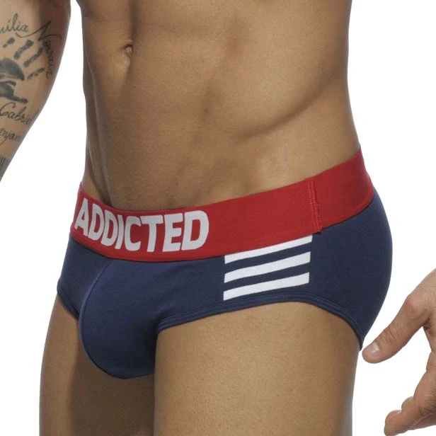Slip Addicted Sailor Stripes AD510. Slip style marin sur les côtés. Doux et confortable grâce au coton. Ceinture élastique logotée ADDICTED. Idéal pour être porté au quotidien. 95% Coton, 5% Elasthanne.