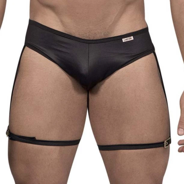 Slip Candyman Garter 99468. Slip trÚs sexy qui joue la carte de la sensualité avec des laniÚres sur les cuisses. 88% Polyamide, 12% Elasthanne.