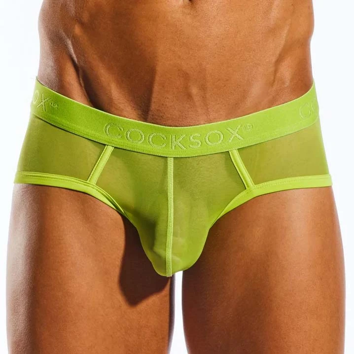 Slip CockSox Citrus Green CX76ME. Quand sport rime avec sexy. Glissez-vous dans cette coupe ultra sexy de sous-vêtements Cocksox. Tissu en maille ultra-douce et respirante. Taille basse. Légèrement transparent. 95% Nylon, 5% Spandex.