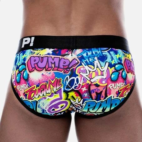 Slip Pump! Drip 12070. Slip taille basse très doux et confortable. Ceinture élastique large logotée PUMP!. Limprimé graffiti diffère sur chaque sous-vêtement, vous offrant un Slip unique. Maintien optimal pour être porté tout au long de la journée. Chaque mètre de ce tissu est fabriqué à partir de 12 bouteilles recyclées. Protection UPF 50. Son corps en microfibre durable qui évacue l’humidité vous gardera au frais. 86% Polyester, 14% Elasthanne.